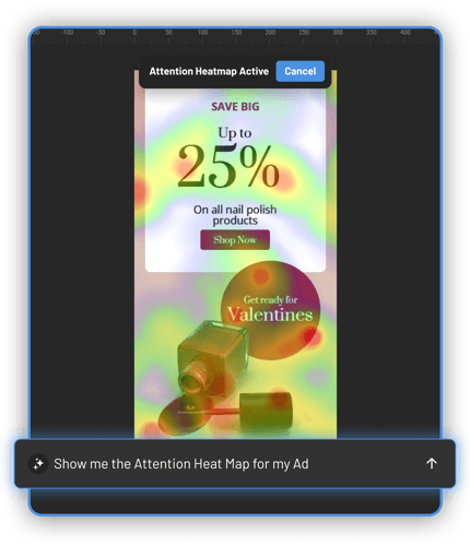 This tool will predict where users’ attention is most likely to focus within your creative, visualizing hot spots directly on your design. You’ll be able to refine composition, CTA placement, and messaging based on real attention data—before your ad even goes live.
